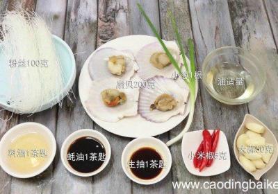 步骤1准备食材:扇贝200克、粉丝100克、大蒜50克、小葱1根、生抽1茶匙、料酒1茶匙、蚝油1茶匙、油适量、小米椒5克 。步骤2扇贝洗净 。步骤3粉丝用温水泡软 。步骤4小葱切葱花 。步骤5大蒜切末 。步骤6小米椒切圈 。步骤7起锅倒油,...