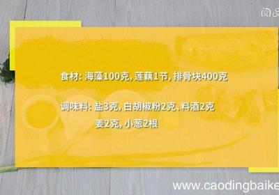 发布时间: 16小时前步骤1食材:海藻100克,莲藕1节,排骨块400克,姜2克,小葱2根 。调味料:盐3克,白胡椒粉2克、料酒2克 。步骤2莲藕洗净,切滚刀块 。步骤3姜切末 。步骤4小葱切葱花 。【海藻莲藕排骨汤的做法 海藻莲藕排骨汤怎么做】步骤5砂锅中放入...