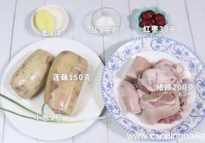 发布时间: 16小时前步骤1主料:猪蹄200克、莲藕100克辅料:姜1块、盐1茶匙、小葱1根、料酒1茶匙、枸杞5克、白胡椒粉5克步骤2猪蹄洗净备用(提前让老板剁成块) 。步骤3莲藕去皮切小块 。步骤4枸杞浸泡5分钟 。步骤5小葱切葱花 。步骤6姜切片 。步骤7锅...