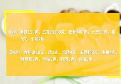发布时间: 11小时前步骤1食材:香菇150克,五花肉300克,面粉400克,大葱50克,姜5克,小葱2根 。调味料:食用油10克,盐2克,鸡精4克,五香粉3克,生抽4克,酵母粉3克,老抽2克,料酒3克,蚝油5克 。步骤2大碗中倒入酵母,加入20克温水,搅拌均匀...