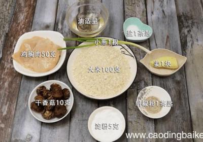 发布时间: 11小时前步骤1准备食材:大米100克、干香菇10克、鸡胸肉50克、油适量、盐1茶匙、姜1块、胡椒粉1茶匙、淀粉5克、小葱1根 。步骤2大米洗净 。步骤3干香菇泡发切条 。步骤4鸡胸肉切片 。步骤5姜切末 。步骤6小葱切葱花 。步骤7首先将鸡胸肉倒入...