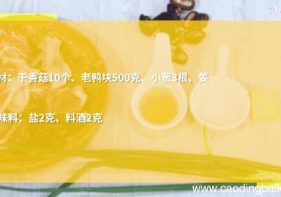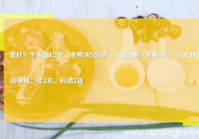步骤1准备食材:干香菇10个、老鸭块500克、大蒜2瓣、生姜5片、小葱3根、盐2克、料酒2克 。步骤2干香菇洗净、用温水泡发15分钟 。【香菇老鸭煲的做法,香菇老鸭煲怎么做】步骤3生姜切片 。步骤41根小葱切葱花 。步骤5锅中水沸、下小葱、...
