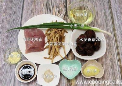 发布时间: 11小时前步骤1主要食材:水发黄花菜100克、瘦肉200克、水发香菇20克、小葱1根、姜1块 。步骤2水发香菇切片 。【香菇黄花菜瘦肉汤怎么做 香菇黄花菜瘦肉汤的做法】 步骤3水发黄花菜洗净切段 。步骤4姜切片 。步骤5瘦肉洗净切片 。步骤6小葱切葱...