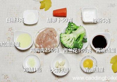发布时间: 8小时前步骤1准备食材:鸡胸肉250g、西兰花100g、胡萝卜50g、大蒜3瓣、淀粉5克、酱油适量、白糖3克、鸡精1匙、盐1勺、香油适量、色拉油适量 。步骤2洗净的鸡肉切块,装入碗中 。步骤3加入酱油、白糖、淀粉,抓匀备用 。步骤4洗净的西兰花切成...