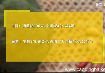发布时间: 8小时前步骤1食材:西兰花500克,小米椒4个,蒜4瓣,生抽2勺,醋2勺,香油1勺 。步骤2西兰花洗净切小朵 。步骤3小米椒切圈 。步骤4蒜切末 。步骤5西兰花放入沸水中焯水1分钟,捞出沥干 。步骤6碗中放入西兰花、蒜末、小米椒、生抽2勺,醋2勺,...