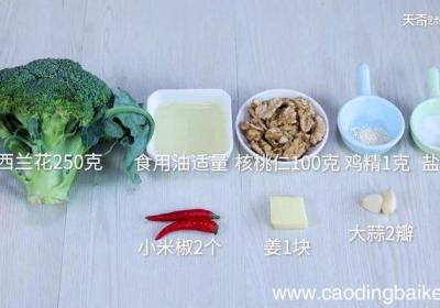 发布时间: 8小时前步骤1【西兰花炒核桃仁做法西兰花炒核桃仁怎么做】准备食材:西兰花250克、核桃仁100克、姜1块、大蒜2瓣、小米椒2个、盐1克、鸡精1克、食用油适量 。步骤2西兰花洗净切成小块 。步骤3核桃仁洗净备用 。步骤4姜切末 。步骤5蒜切末 。步骤...