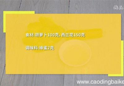 发布时间: 8小时前步骤1食材:胡萝卜100克,西兰花150克、蜂蜜2克 。步骤2胡萝卜切片 。步骤3西兰花切小朵 。步骤4锅中水沸后,放入胡萝卜,煮3分钟,捞出 。步骤5再放入西兰花,煮1分钟,捞出 。步骤6料理机中放入西兰花、胡萝卜,搅打成至,过滤至杯中...