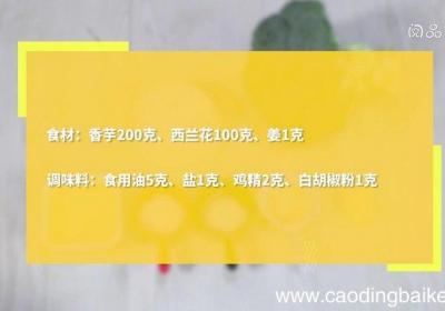 发布时间: 7小时前步骤1食材:香芋200克、西蓝花100克、姜1克调味料:食用油5克、盐1克、鸡精2克、白胡椒粉1克步骤2香芋切滚刀块,西蓝花切小朵,姜切末 。步骤3热锅倒油,油温5成热时,下姜,炒香,倒入香芋,翻炒 。步骤4加适量的清水,煮至香芋熟软 。步...