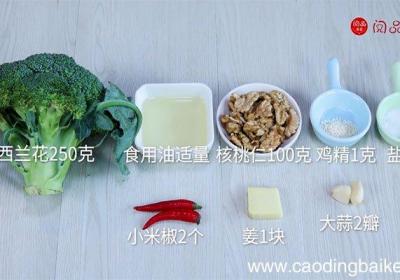 发布时间: 7小时前【西兰花炒核桃仁怎么炒 西兰花炒核桃仁怎么做】步骤1准备食材:西兰花250克、核桃仁100克、姜1块、大蒜2瓣、小米椒2个、盐1克、鸡精1克、食用油适量 。步骤2将洗净的西兰花切成小块 。步骤3核桃仁洗净备用 。步骤4姜切末 。步骤5蒜切末...
