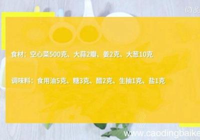 发布时间: 13小时前步骤1食材:空心菜500克、大蒜2瓣、姜2克、大葱10克 。调味料:食用油5克、糖3克、醋2克、生抽1克、盐1克 。步骤2空心菜从尾部掐断、杆不用、掐好的空心菜尾部洗净、沥干 。步骤3大蒜切末 。步骤4姜切末 。步骤5大葱切片 。步骤6热锅...