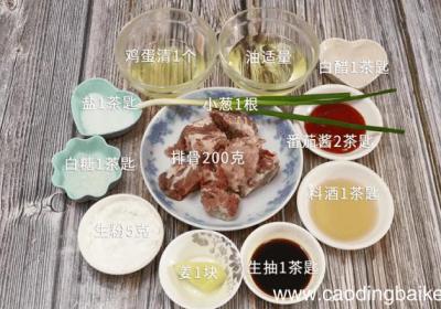 步骤1准备食材:排骨200克、鸡蛋清1个、番茄酱2茶匙、盐1茶匙、白糖1茶匙、料酒1茶匙、生粉5克、白醋1茶匙、油适量、姜1块,小葱1根、生抽1茶匙 。步骤2排骨洗净 。步骤3【酸甜排骨 酸甜排骨的做法】小葱切葱花 。步骤4锅中烧热水,放入...