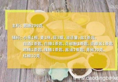 发布时间: 13小时前步骤1准备材料:肥肠200克、小葱1根、姜1块、蒜3瓣、油适量、盐1茶匙、白酒1茶匙、白糖1茶匙、花椒粉1茶匙、豆瓣酱1茶匙、鸡精1茶匙、味精1茶匙、酱油1茶匙、青椒10克、红椒10克 。步骤2肥肠洗净切段 。步骤3青椒切小块 。步骤4红椒...