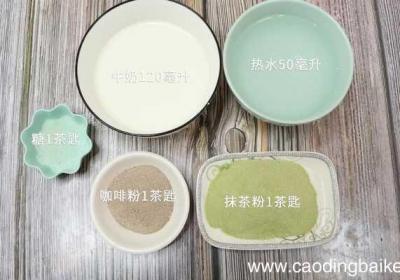 发布时间: 2天前步骤1准备食材:咖啡粉1茶匙、热水50毫升、牛奶120毫升、抹茶粉1茶匙、糖1茶匙 。步骤2首先碗中倒入咖啡粉,倒入50毫升热水,搅拌均匀备用 。【抹茶拿铁抹茶拿铁的做法】步骤4接着在牛奶中倒入抹茶粉,继续搅拌均匀 。步骤5接下来将调好的抹...