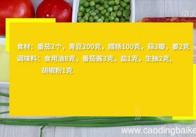 发布时间: 12小时前【番茄焖青豆 番茄焖青豆详细做法】步骤1食材:番茄2个,青豆200克,腊肠100克,蒜3瓣,姜2克调味料:食用油8克,番茄酱3克,盐1克,生抽2克,胡椒粉1克步骤2番茄切丁 。步骤3腊肠切丁 。步骤4姜切末 。步骤5蒜切末 。步骤6热锅倒油...