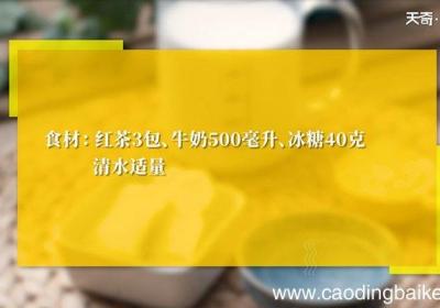 发布时间: 11小时前步骤1所需食材:红茶3包、牛奶500毫升、冰糖40克、清水15毫升 。步骤2奶锅中倒入冰糖 。步骤3加入清水小火熬制呈棕红色 。【焦糖奶茶怎么做 焦糖奶茶的做法】步骤4再倒入少量牛奶搅拌均匀 。步骤5随后倒入剩下的牛奶 。步骤6放入红茶包...