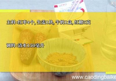 发布时间: 10小时前步骤1所需食材:红枣4个,生姜1块,牛奶1盒,红糖5克 。所需调料:清水150毫升 。【姜枣奶茶怎么做 姜枣奶茶的做法】步骤2生姜切丝 。步骤3红枣去核 。步骤4依次倒入锅中,倒入适量清水 。步骤5小火烧开,倒入红糖、纯牛奶,放入茶包,搅拌...