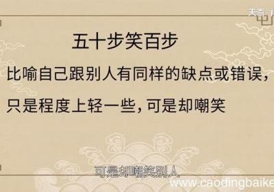 发布时间: 6小时前五十步笑百步比喻自己跟别人有同样的缺点或错误,只是程度上轻一些,可是却嘲笑别人 。五十步笑百步的故事告诉我们看事物不能只看表面,也不能只局限于别人,而要看其本质和全局,看大局才能更好地发现问题,从而进行改正,同时也告诫我们要有自知之明,以及...