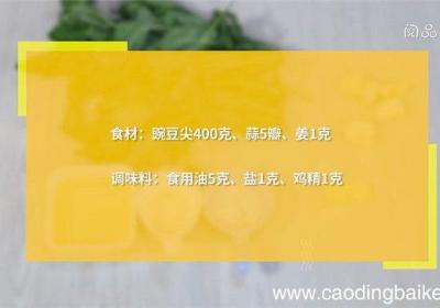 发布时间: 16小时前步骤1食材:豌豆尖400克、蒜5瓣、姜1克调味料:食用油5克、盐1克、鸡精1克步骤2蒜切末 。步骤3姜切末 。步骤4豌豆尖洗净、沥干 。步骤5热锅倒油、油温5成热时、下姜、蒜、盐、炒香、放豌豆尖、鸡精、炒匀即可 。【蒜香豌豆尖的做法 蒜香豌...