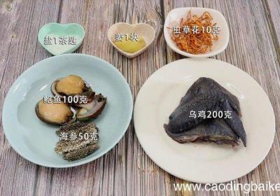 发布时间: 12小时前步骤1准备食材:乌鸡200克、鲍鱼100克、虫草花10克海参50克、姜1块、盐1茶匙 。步骤2乌鸡洗净备用 。步骤3姜切片 。步骤4鲍鱼去壳洗净打上花刀 。步骤5海参洗净 。步骤6锅中烧热水放入乌鸡焯水2分钟捞出 。步骤7砂锅中放入姜片、鲍...