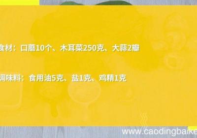 发布时间: 15小时前步骤1食材:口蘑10个、木耳菜250克、大蒜2瓣 。调味料:食用油5克、盐1克、鸡精1克 。步骤2木耳菜洗净、沥干备用 。步骤3口蘑洗净、切片 。【口蘑木耳菜怎么做 口蘑木耳菜的做法】步骤4大蒜切末 。步骤5热锅倒油,油温5成热时,下蒜末,...
