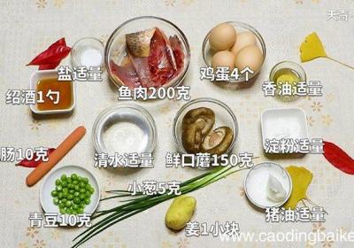 发布时间: 15小时前步骤1准备食材:鱼肉200克、鲜口蘑150克、火腿肠10克、青豆10克、鸡蛋4个、小葱5克、姜1小块、香油适量、绍酒1勺、盐适量、淀粉适量、清水适量、猪油适量 。步骤2先将洗净的鱼肉切成小片,剁成细泥,放入碗中 。步骤3鱼肉中加入清水,再调...