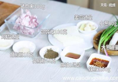 发布时间: 11小时前步骤1准备食材:猪肉末300克,馄饨皮100克,小葱80克,大葱30克,辣椒油50克,麻油一汤匙,胡椒粉10克 。步骤2小葱切成葱花 。步骤3大葱切丝、然后切末 。步骤4姜切末 。步骤5大蒜切成末 。步骤6猪肉末中倒入少许盐、鸡精、胡椒粉、...