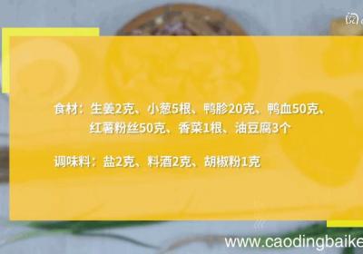 发布时间: 15小时前步骤1准备食材:老鸭块500克,生姜2克,小葱5根,鸭胗20克,鸭血50克,红薯粉丝50克,香菜1根,油豆腐3个、盐2克,料酒2克,胡椒粉1克 。步骤2鸭肉洗净备用 。步骤3姜切片 。步骤4油豆腐对半切开 。步骤5鸭血切块 。步骤6红薯粉丝...