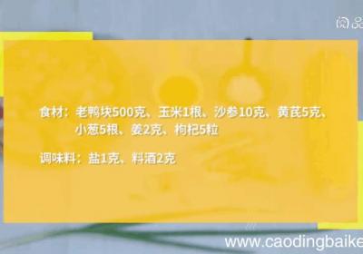 发布时间: 15小时前步骤1准备食材:老鸭块500克,玉米1根,沙参10克,黄芪5克,小葱5根,姜2克,枸杞5粒,盐2克,料酒2克 。步骤2鸭肉洗净备用 。步骤3姜切片 。步骤4沙参、黄芪、枸杞洗净 。【玉米沙参老鸭汤做法 玉米沙参老鸭汤怎么做】步骤51根小葱切...