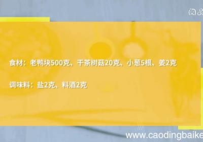 发布时间: 15小时前步骤1准备食材:老鸭块500克,干茶树菇20克,小葱5根,姜2克、盐2克,料酒2克 。步骤2鸭肉洗净备用 。步骤3姜切片 。步骤4【茶树菇老鸭汤做法茶树菇老鸭汤怎么做】1根小葱切葱花 。步骤5干茶树菇洗净备用 。步骤6锅中加入1升清水,放入...