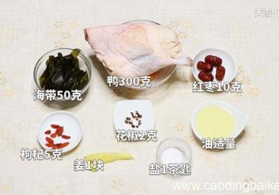 发布时间: 15小时前步骤1准备食材:老鸭块500克,干海带10克,大豆5克,生姜2克,小葱5根、盐2克,料酒2克,花椒1克 。步骤2鸭肉洗净备用 。步骤3姜切片 。步骤4大豆洗净备用 。步骤5干海带洗净,切小块 。步骤61根小葱切葱花 。步骤7锅中加入1升清水...