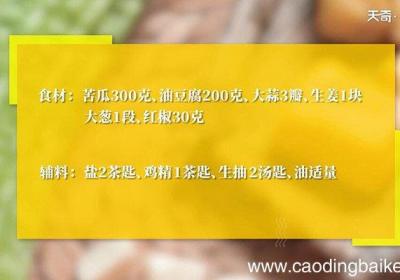 发布时间: 12小时前步骤1食材:苦瓜300克、油豆腐200克、大蒜3瓣、生姜1块、大葱1段、红椒30克 。辅料:盐2茶匙、鸡精1茶匙、生抽2汤匙、油适量 。步骤2油豆腐切片 。步骤3苦瓜对半切开,去芯后切片 。步骤4加少许盐揉搓,加点水腌制20分钟后,挤出多余...