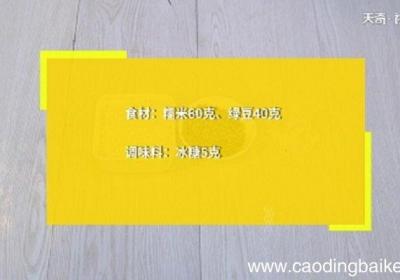 发布时间: 2天前步骤1食材:糯米60克、绿豆40克 。调味料:冰糖5克 。步骤2绿豆用清水浸泡5小时 。步骤3糯米用清水浸泡2小时 。步骤4砂锅中放入绿豆、糯米,加入600毫升清水,中小火煮50分钟 。【绿豆粥怎么做 绿豆粥的做法】...