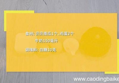 步骤1食材:贝贝南瓜1个、鸡蛋2个、牛奶150毫升 。白糖10g 。步骤2贝贝南瓜外皮刷洗干净,在靠近蒂的地方切开,做一个盖子 。步骤3清空南瓜籽,挖出一个小碗大小的空 。步骤4将南瓜带盖,放入蒸锅中,大火蒸12分钟 。步骤5鸡蛋打散,加入...