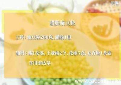 发布时间: 13小时前步骤1准备食材:豌豆粒200克、腊肠1根、盐1茶匙、五香粉1茶匙、油适量、干辣椒2个、花椒5克 。步骤2腊肠切成丁 。步骤3干辣椒切成段 。步骤4【腊肠豌豆粒的做法 腊肠豌豆粒怎么做】起锅倒油,油热放入干辣椒、花椒炒香 。步骤5放入腊肠煸炒...