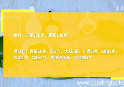 发布时间: 13小时前步骤1主料:沙葛200克、腊肠100克辅料:青椒50克、盐2勺、大蒜3瓣、小葱1根、白糖2克、蚝油1勺、鸡粉1勺、食用油适量、水淀粉1勺步骤2先将沙葛剥皮,切成粗条【腊肠炒沙葛的做法 腊肠炒沙葛怎么做】 步骤3腊肠切片步骤4大蒜切粒步骤5青...