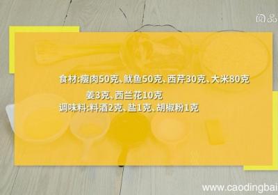 发布时间: 9小时前步骤1食材:瘦肉50克、鱿鱼50克、西芹30克、大米80克、姜3克、西兰花10克、料酒2克、盐1克 。【瘦肉鱿鱼粥做法 瘦肉鱿鱼粥怎么做】步骤2鱿鱼切小丁 。步骤3西芹切碎步骤4姜切末 。步骤5西兰花放入沸水锅中,煮30秒,捞出备用 。步骤...