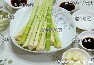 发布时间: 12小时前步骤1主料:春笋300克、葱10克、蒜5瓣 。辅料:老抽1汤匙、糖1汤匙、蚝油1汤匙、蒸鱼豉油1汤匙、色拉油适量、盐1茶匙 。步骤2将葱切碎 。步骤3蒜切末 。步骤4把洗净的春笋切成滚刀状 。步骤5下入沸水中焯3分钟去涩味,之后盛出控干水分...