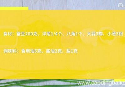 发布时间: 11小时前步骤1食材:蚕豆200克、洋葱14个、八角1个、大蒜3瓣、小葱3根、食用油5克、酱油2克、盐1克 。步骤2蚕豆洗净,控水 。步骤3洋葱切块,小葱切段,大蒜对半切开 。步骤4热锅倒油,油温5成热时,下大蒜、八角,加蚕豆,翻炒2分钟 。步骤5放...