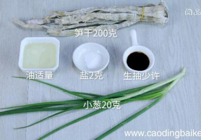 步骤1准备食材:笋干200克、小葱20克、盐2克、生抽少许、油适量 。步骤2笋干提前泡发 。步骤3然后捞出切成小段 。步骤4将小葱的葱白部分切成小段 。步骤5【葱油笋干的做法 葱油笋干怎么做】热锅中倒入适量食用油,升温后,放入葱白,煸出葱油...