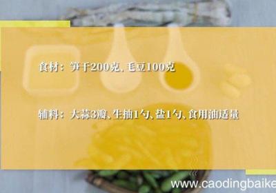 发布时间: 14小时前步骤1食材:笋干200克、毛豆100克 。辅料:大蒜3瓣、生抽1勺、盐1勺、食用油适量 。步骤2把笋干提前用水泡软,然后捞出沥干水分 。步骤3泡完后切成2cm的小段备用 。步骤4新鲜毛豆剥壳 。步骤5大蒜切碎备用 。【笋干炒毛豆的做法 笋干...