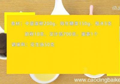 发布时间: 12小时前步骤1准备食材:中筋面粉200g、转化糖浆150g、枧水5克、奶粉10克、豆沙馅700克、蛋黄1个、花生油50克 。步骤2盆中倒入转化糖浆,加入50克花生油、枧水 。步骤3搅拌均匀后加入中筋面粉,奶粉 。步骤4拌成面团,冷藏2小时 。步骤5...