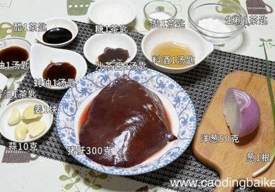 发布时间: 15小时前步骤1准备食材:猪肝300克、洋葱50克、姜1块、蒜10克、葱1根、盐1茶匙、沙茶酱2汤匙、蚝油1汤匙、酱油1汤匙、料酒1汤匙、糖1茶匙、醋1茶匙、生粉1茶匙、香油1茶匙 。步骤2姜切末 。步骤3洋葱切块 。步骤4蒜切末 。步骤5葱切段 。...