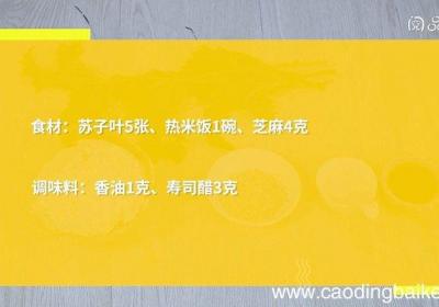发布时间: 15小时前步骤1食材:苏子叶5张、热米饭1碗、芝麻4克 。调味料:香油1克、寿司醋3克 。步骤2苏子叶洗净 。步骤3热米饭中加入香油、寿司醋,拌匀 。步骤4再撒入芝麻,拌匀 。步骤5将米饭放入苏子叶一侧 。步骤6对折即可 。【苏子叶饭团的做法 苏子叶...