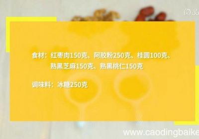 发布时间: 13小时前步骤1食材:红枣肉150克、阿胶粉250克、桂圆100克、熟黑芝麻150克、熟黑桃仁150克 。调味料:冰糖250克 。步骤2【阿胶桂圆膏的做法 阿胶桂圆膏怎么做】锅中放水烧沸,放入阿胶隔水搅拌至融化,放入冰糖搅拌至融化,黏稠 。步骤3依次...