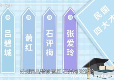 【民国四大才女 民国四大才女分别是】“民国四大才女”分别是吕碧城、萧红、石评梅、张爱玲 。吕碧城,字遁夫,号明因、宝莲居士 。女权运动的首倡者之一,中国女子教育的先驱,中国新闻史上第一位女编辑 。代表作品有《吕碧城集》《信芳集》《欧美漫游录...