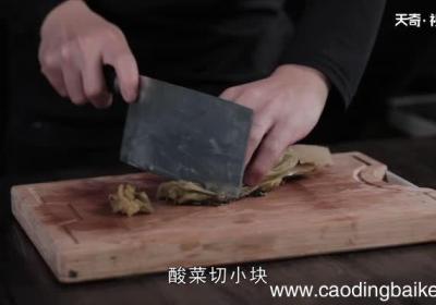 1、羊杂切小块,酸菜切小块,姜切片,大蒜切片,小葱切段,香菜切末 。2、羊杂放入锅中焯水后捞出 。3、倒入适量油,油温6成热,倒姜片、大蒜、葱段、干辣椒、酸菜翻炒均匀,再加入适量水、羊杂煮开,调入胡椒粉、盐,加入香菜、葱花即可 。【酸菜羊杂...